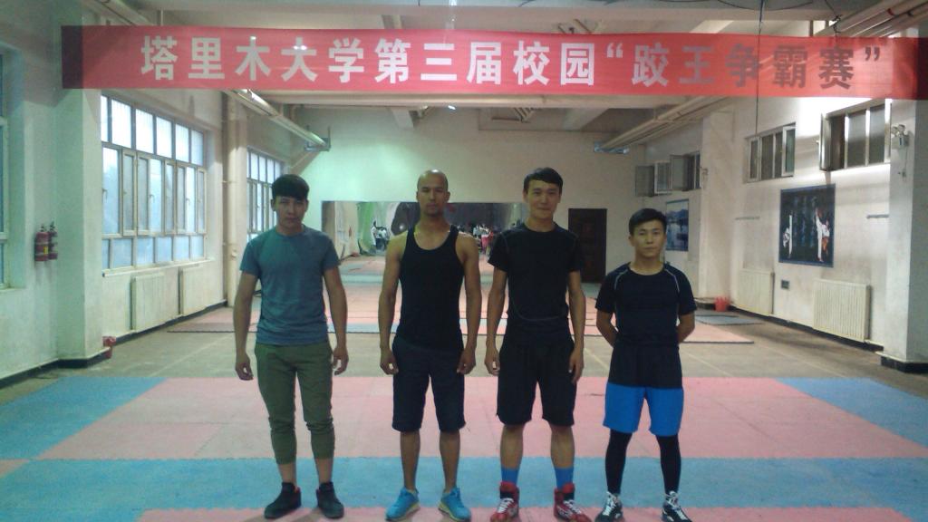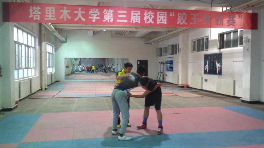 塔里木大学第三届校园“跤王”争霸赛于2017年5月17日晚落下帷幕。本次比赛共有来自8各学院的汉族、哈萨克族、维吾尔族、柯尔克孜族、蒙古族、回族等6个民族的106名男子报名参加。
