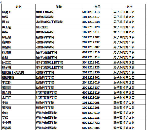 2019年10月29日,我校第5届“联通杯”乒乓球单项比赛圆满落幕。从25日晚开始,来自我校十个院部的100多名乒乓球爱好者经过5天的激烈角逐,24名乒乓球爱好者脱颖而出,分别获得乒乓球比赛项目的男女单打冠亚季军、男女双打冠亚季军以及混合双打的冠亚季军。参赛的同学在赛场上挥洒汗水,收获健康与欢乐。