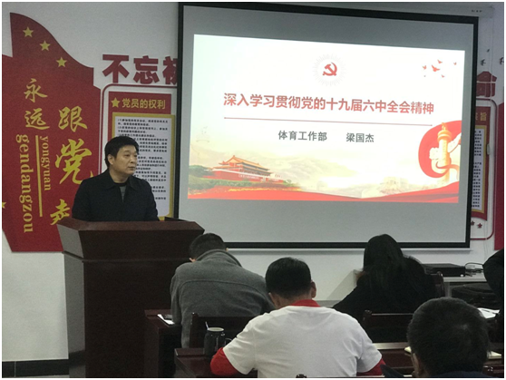 12月23日下午,体育工作部举办学习贯彻党的十九届六中全会精神宣讲报告会。体育工作部直属党支部书记梁国杰作专题宣讲报告。