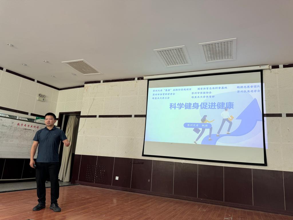 活动首先由鲍老师开展以《科学运动促进健康》为主题的讲座,详细介绍了运动与健康的协调统一关系,具体分析介绍了如何进行科学的运动锻炼,针对现代生活中的常见的一些健康问题如何进行针对性的运动训练。