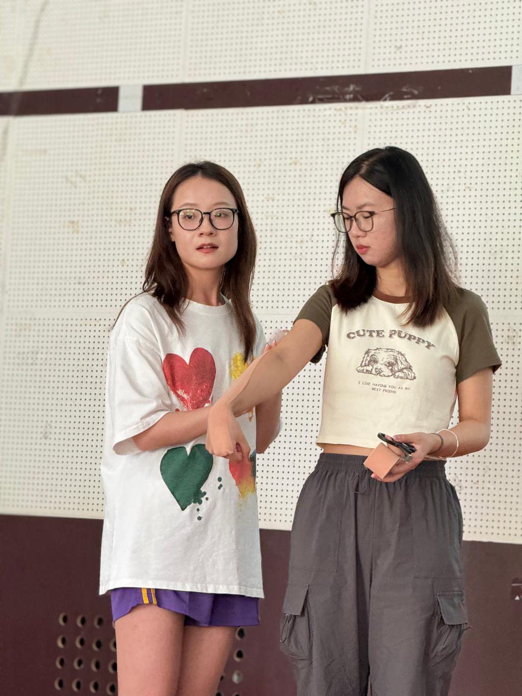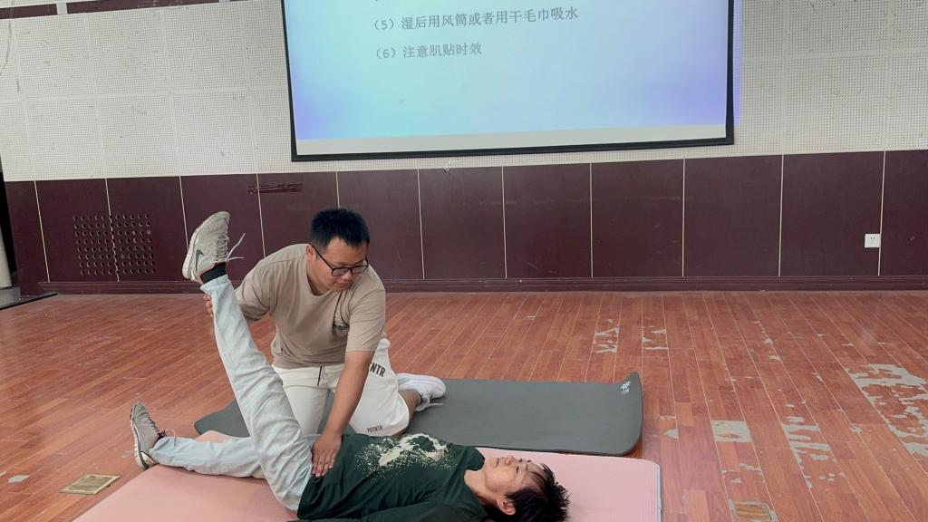 随后,由苏州大学研究生屈家宁为塔里木大学的与会成员进行《运动机能贴布的原理与运用》讲座,从原理角度详细介绍了运动机能贴布的分类和作用,并邀请在场来宾亲身体验和示范,感受肌贴的神奇之处。