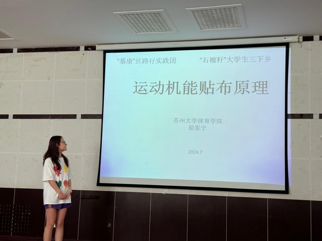 本次交流座谈会后,苏州大学体育学院开展暑期实践团队“慕康”丝路行实践团老师和同学们开展了以《科学运动促进健康》《运动机能贴布的原理》为主题的两场讲座。