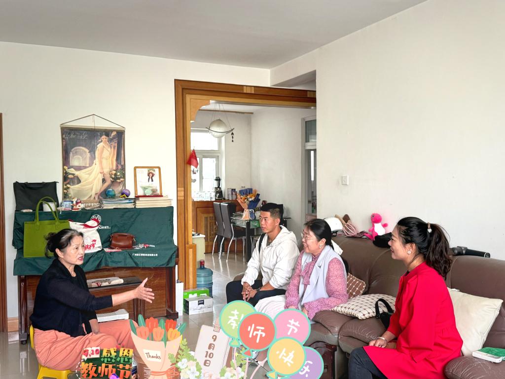 会桃李之芳园,序天伦之乐事。慰问中,王延钦老师外孙女刚刚出生,全家人都沉浸在幸福和喜悦之中。回想往昔的教学岁月,王老师脸上洋溢出自豪的笑容。她向部门领导表示了感谢,并祝体育工作部全体教师节日快乐。