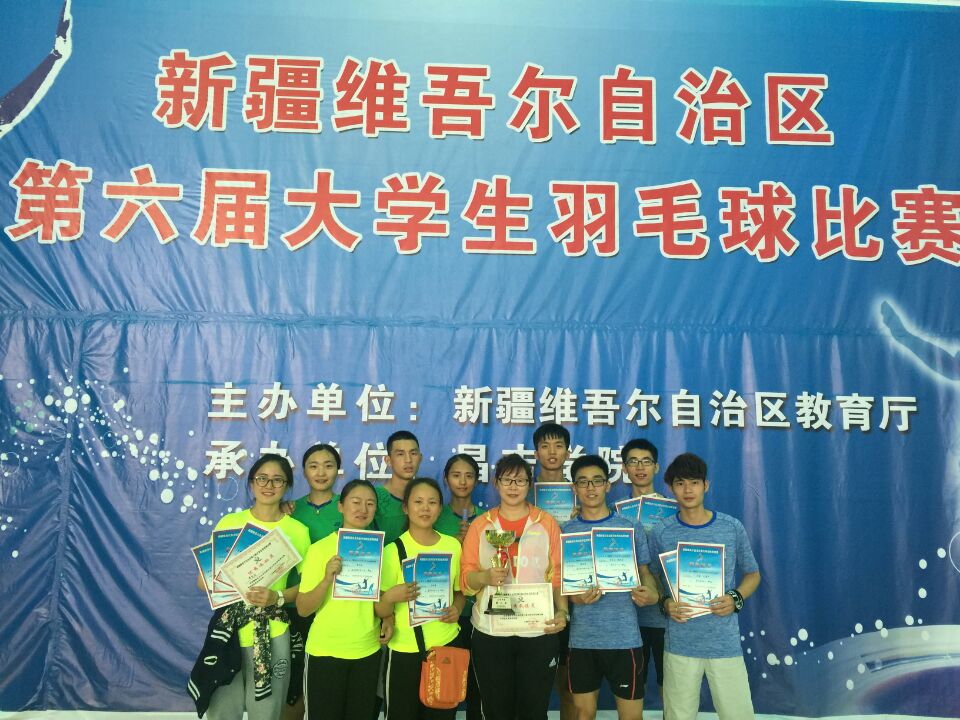 5月19日至22日,我校派出由体育工作部杨建军主任领队、教练员殷培红老师、运动员何洋洋、董哲琦、王海鸥、利嘉杰、黄慧欣、廖荣松、代超、杜佳娟、章小彤、张昆仑十名同学组成的代表队参加了在昌吉学院举行的第六届自治区大学生羽毛球比赛。