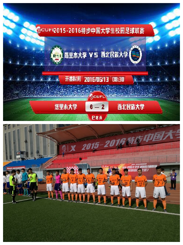 6月13日上午,在2015-2016特步中国大学生校园足球联赛校园组(西北赛区)比赛中,我校足球队以6:2的大比分战胜西北民族大学,首战告捷。预祝足球队在随后的比赛中再传佳绩。