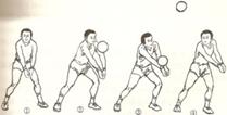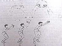 | 1、结合半蹲准备姿势的原地徒手模仿垫球练习:要求先慢后快,重心低,动作协调,教师及时检查与纠正错误动作。 2、原地与移动的徒手垫球动作练习:听教师口令做原地垫球徒手动作;看教师手势做前、后、左、右的并步、交叉步、跨步的移动垫球动作练习。要求动作正确、协调。连贯。 3、垫抛球练习:两人或三人一组,相距3m,一抛一垫或一抛二垫。要求先教会学生用双手下手抛球,抛出的球弧度适宜,不太旋转,落点准确。垫球者先将球垫高 垫稳,然后要求垫准到位。20次*3组 4、对墙垫球练习:学生每人一球,距墙2m处连续对墙自垫。要求垫击手型,垫击点和垫击部位正确,用力协调,控制球能力强。 1、原地模仿练习.徒手做传球准备姿势,听教师的口令依次做蹬地、展体。伸臂击球动作练习。重点体会传球前的准备姿势,身体协调用力的动作和传球的手型。 2、原地传球练习 ①每人一球,自己向额上方抛球:做好传球手型在击球点位置将下落的球接住,然后自我检查手型。 ②原地自传球练习:要求把球传向头上正上方,传球高度离手 1-1.5 m。连续传30次为一组,做2组。 ③对墙自传球练习:要求距离墙50cm左右连续对墙自传球,体会正确的手型和手指手腕用力的肌肉感觉。 3、自抛自传 抛球高度从50公分逐渐增到1.5米,接球人注意移动在正确的击球点处把球接住,并观察手型是否正确再自抛球将球传出,两人间隔4米轮流进行练习。 4、两人一组,间隔4 米自传3到4次然后将球传给对方,队友将球以传球手型将球接住后再将球传过来 5、3到4米近距离一抛一传,尽量抛准,注意传球要注意弧度 组织方法: |